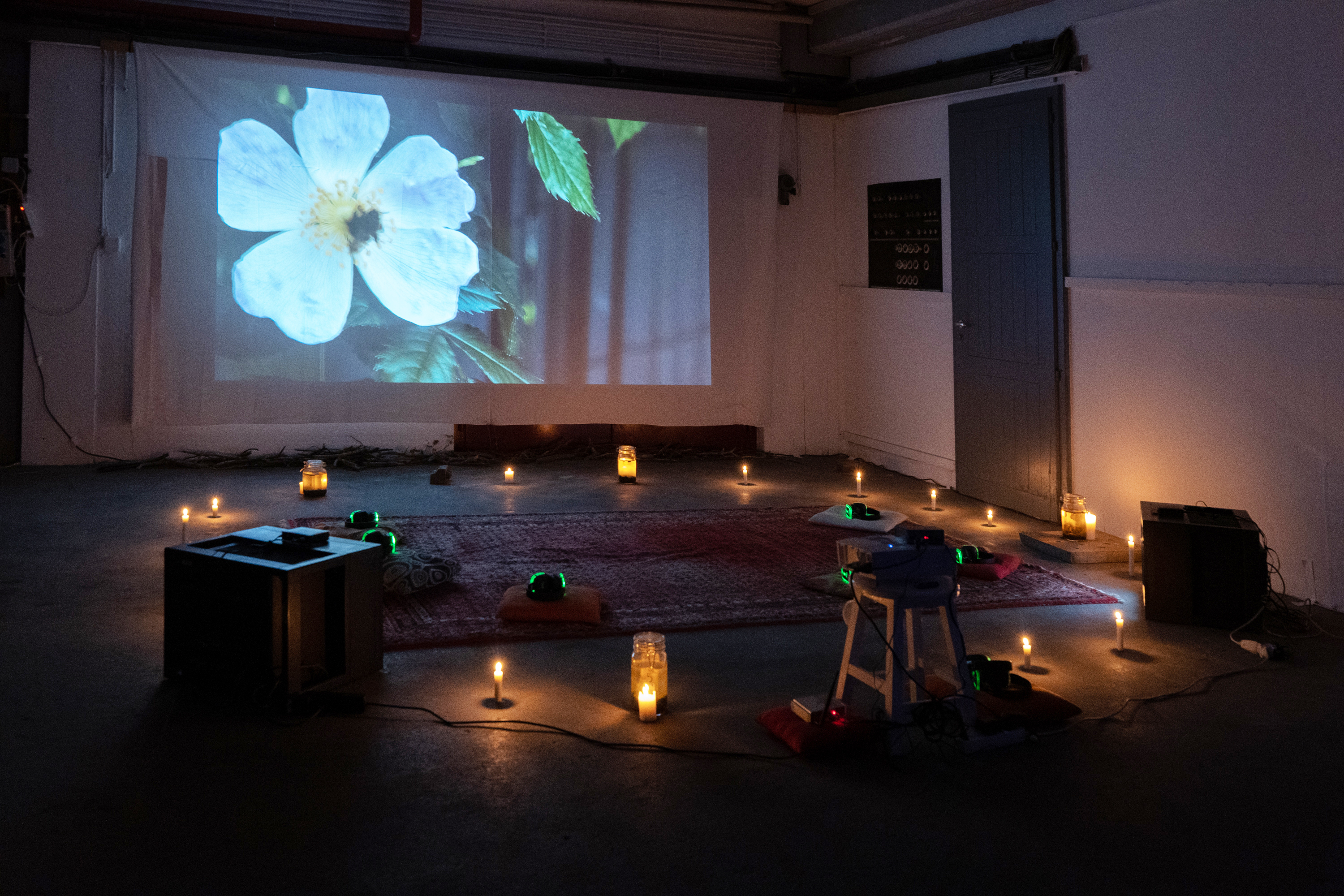 L’installation vidéo, entre fiction, documentaire et expérimentation, relate une recherche théorique et pratique de relationnalité inter-espèces. Elle pose la question des écoutes que nous portons aux mondes qui nous entourent et de la place que nous souhaiterions trouver dans ceux-ci.