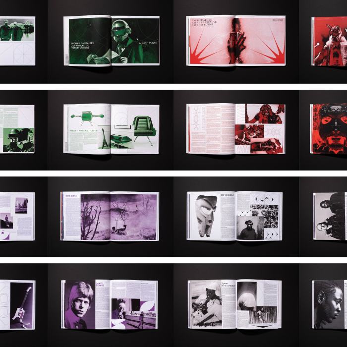 33 Tours, magazine au format carré, a pour thématique la musique. Il se divise en 5 chapitres qui abordent différents genres musicaux: la musique électronique, le métal, le jazz, le rock et le rap. Les chapitres se composent d’une description détaillée du genre musical suivie d’une sélection d’artistes populaires. Ils se distinguent par l’utilisation d’une seule couleur et d’une esthétique inspirée par des récurrences graphiques présentes sur les pochettes d’album. 33 Tours vous permet de découvrir ou redécouvrir de grands noms de la musique ainsi que l'origine et l’histoire de genres musicaux.